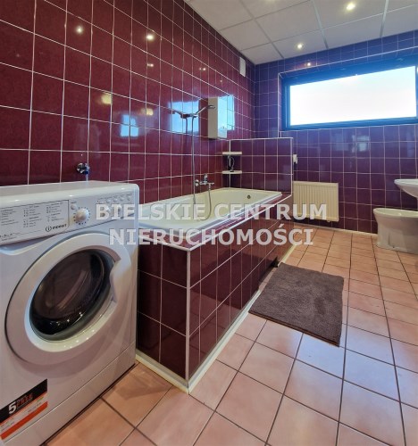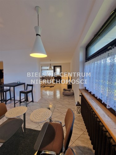 - przestronnego salonu z kominkiem oraz wyjściem do ogrodu na taras, aneksu kuchennego z przejściem do jadalni, dwóch pokoi , dużej łazienki,