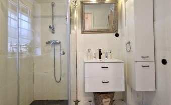 -dwie sypialnie, garderoba, łazienka z wanną i toaletą. Pomieszczenia łączy hall wewnętrzny z wejściem na balkon.