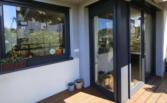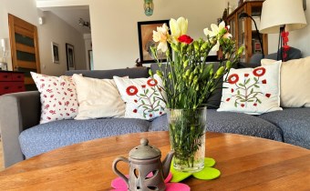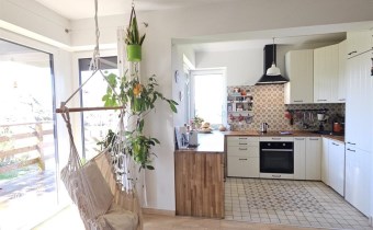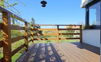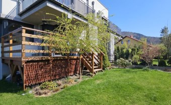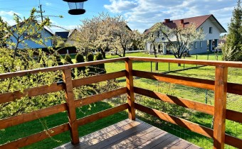 - przestronny salon z wyjściem na duży drewniany taras ( z zejściem do ogródka )