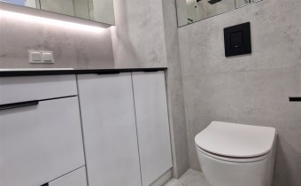 Mieszkanie wykończone i wyposażone. W pokojach na podłogach panele najwyższej jakości, na ścianach gładzie gipsowe. W części kuchennej na podłodze gres. Energooszczędne porządne trzy szybowe okna. Oświetlenie energooszczędne typu LED.