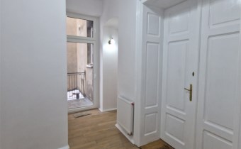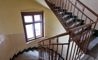 Klatka schodowa zamykana na domofon. Doskonała lokalizacja z bezpośrednim dostępem do wszelkich punktów użyteczności publicznej oraz głównych traktów handlowych.